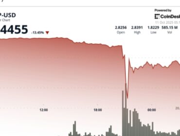 CoinDesk XRP Crashes 40%, Before Recovering, in Biggest One-Day Drop BTC $112,641.44 ETH $3,803.88 13.02% USDT $1.0014 BNB $1,114.94 12.62% XRP $2.4155 15.11% SOL $182.98 18.17% USDC $0.9999 TRX $0.3176 DOGE $0.1922 24.32% ADA... by Shaurya Malwa October 11, 2025 0 commentFacebookTwitterLinkedInPinterestshare