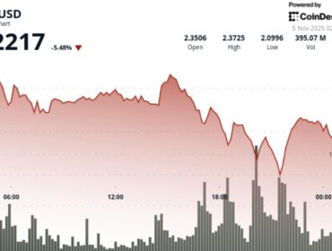 CoinDesk XRP Slides 6% as Bearish Bitcoin Sentiment Weighs Down Ripple-Linked Token Markets Share this article By Shaurya Malwa, CD Analytics Updated Nov 5, 2025, 3:19 a.m. Published Nov 5, 2025, 3:17 a.m. XRP fell 6.4% to $2.20... by Shaurya Malwa November 5, 2025 0 commentFacebookTwitterLinkedInPinterestshare