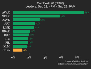 CoinDesk CoinDesk 20 Performance Update: Avalanche (AVAX) Jumps 8.9%, Leading Index Higher News Back to menu News Markets Finance Tech Policy Focus Prices Back to menu Prices Data Back to menu Indices Back to menu Indices... by CoinDesk Indices September 23, 2025 0 commentFacebookTwitterLinkedInPinterestshare