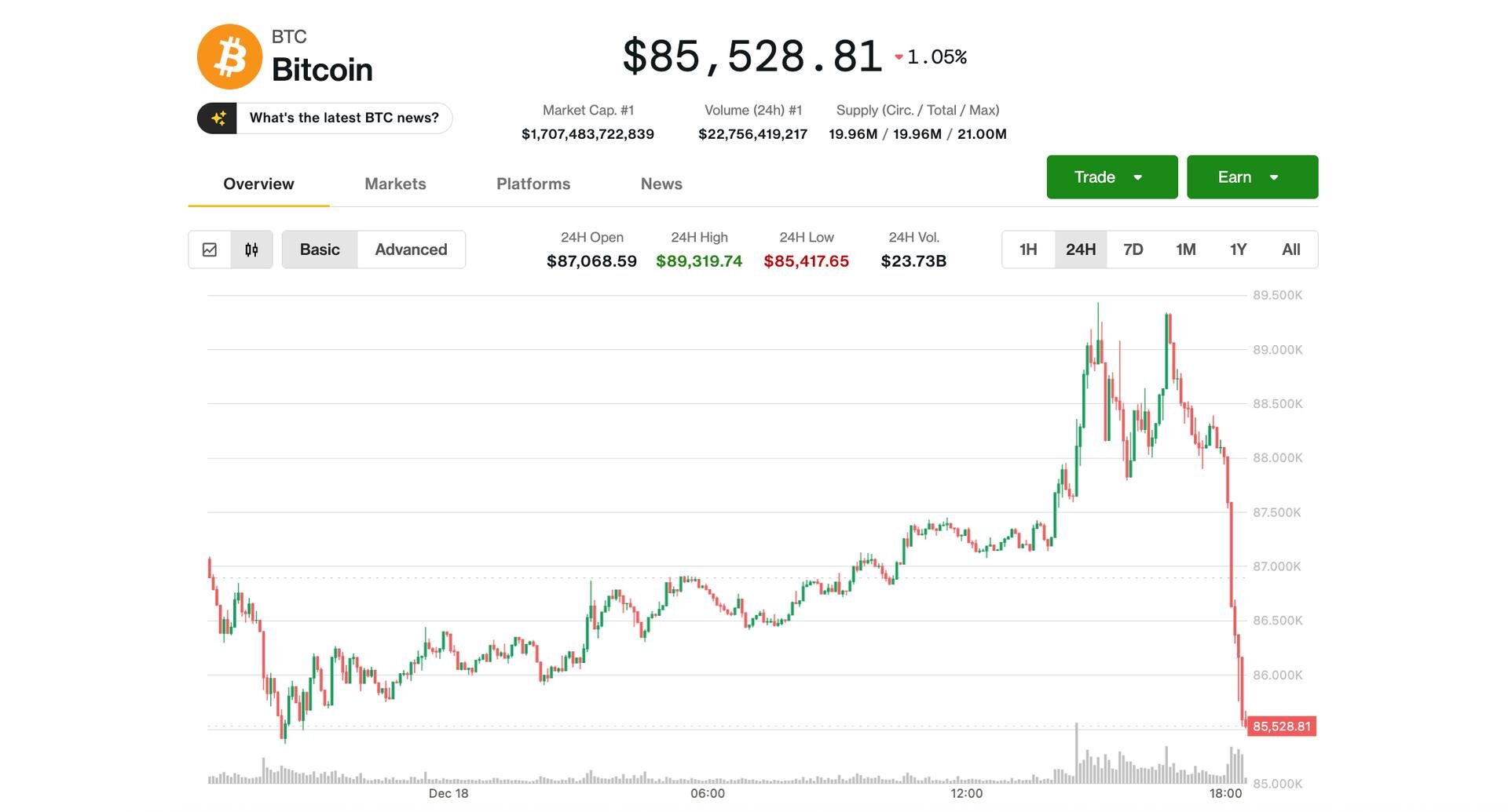 Bitcoin (BTC) price news: BTC quickly gives up advance above $89,000