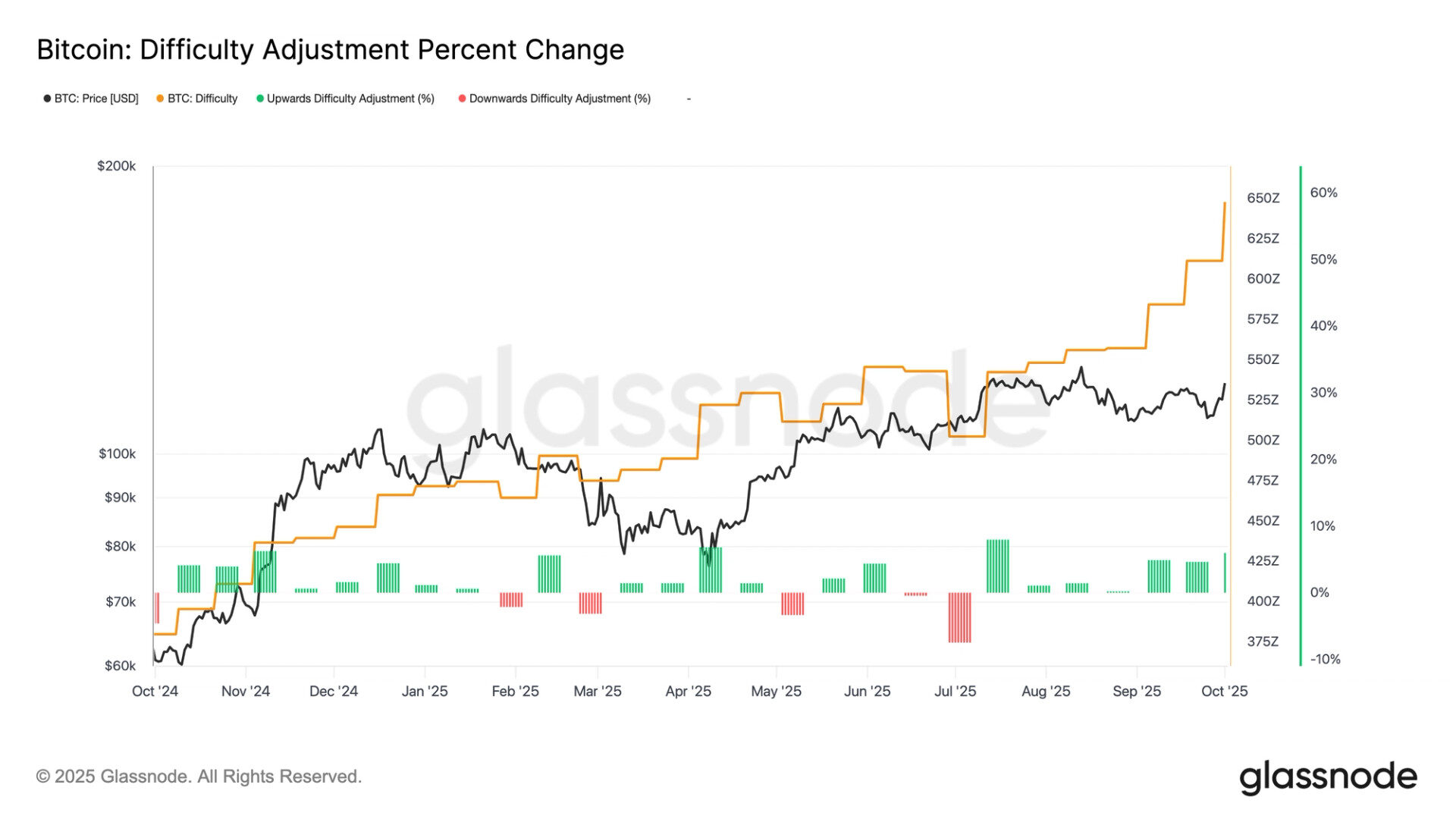 Bitcoin’s mining difficulty climbed 5% to a record 150.84 trillion on Wednesday, marking the seventh straight upward adjustment, according to Glassnode.