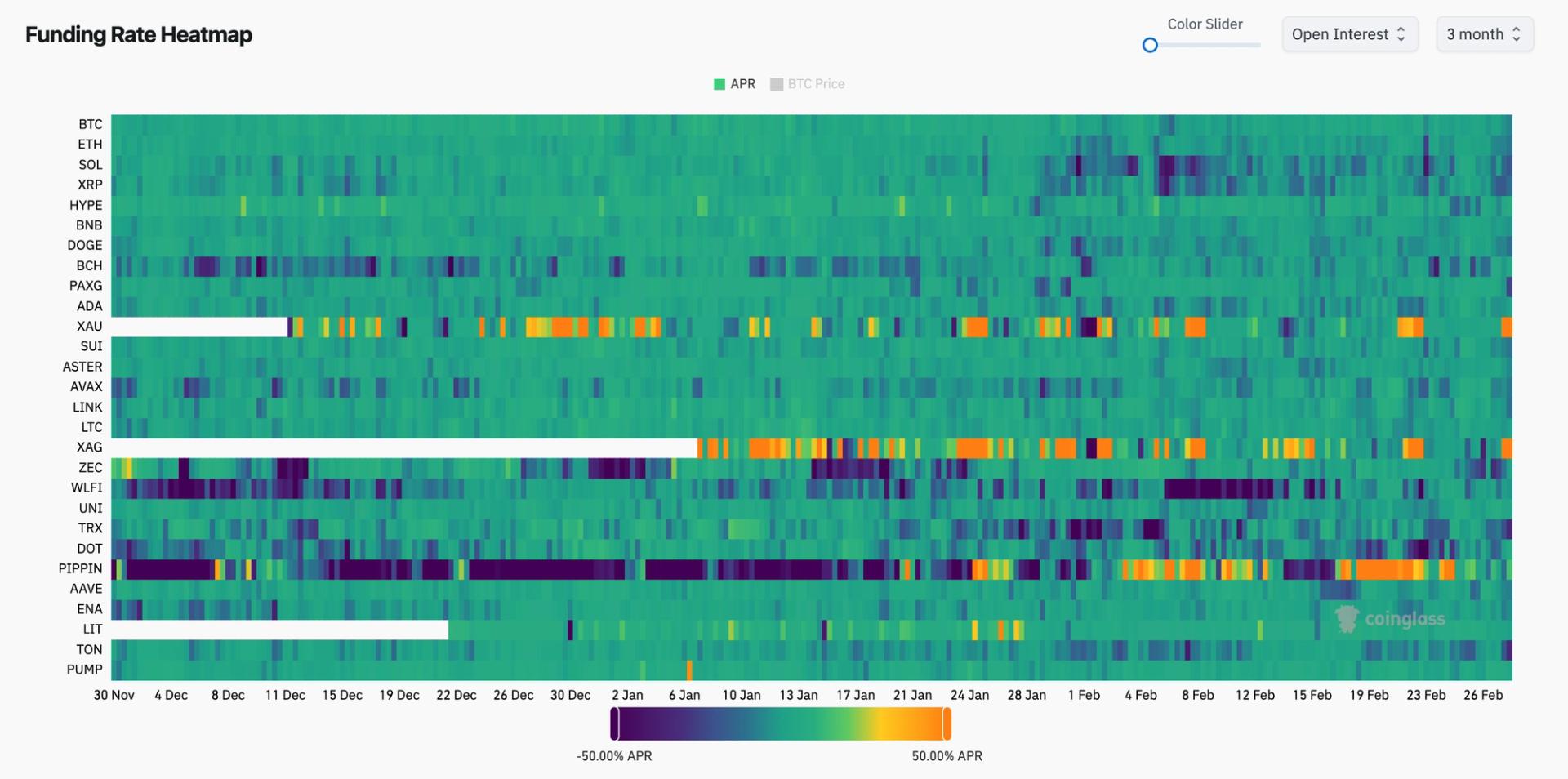 Negative funding rates, rising open interest and liquidations point to crowded positioning and heightened derivatives activity.