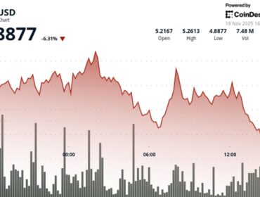 CoinDesk HBAR Slides 0.5% to $0.146 as Technical Support Crumbles Hedera’s native token breaks key levels on elevated volume. Institutional distribution patterns intensify selling pressure. by CD Analytics November 19, 2025 0 commentFacebookTwitterLinkedInPinterestshare