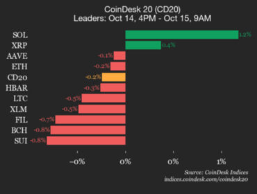 CoinDesk Crypto Markets Today: Crypto Lags Behind Stocks and Gold as Traders Turn Defensive BTC $111,650.11 ETH $4,081.85 USDT $1.0009 BNB $1,171.27 XRP $2.4935 SOL $202.23 USDC $1.0002 DOGE $0.2008 TRX $0.3173 ADA $0.6873 HYPE $39.50 LINK $18.59... by Oliver Knight October 15, 2025 0 commentFacebookTwitterLinkedInPinterestshare