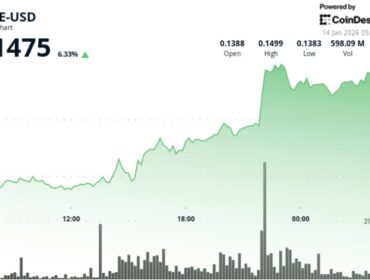 CoinDesk Dogecoin jumps nearly 9% as buyers push price out of recent downtrend The rally in meme coins like Dogecoin and Pepe reflects renewed speculative interest as broader crypto markets remain mixed. by Shaurya Malwa January 14, 2026 0 commentFacebookTwitterLinkedInPinterestshare