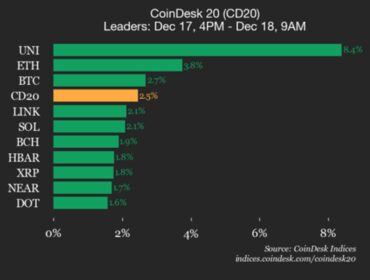 CoinDesk 20 Performance Update: Uniswap Surges 8.4% as All Index Constituents Rise News Video Consensus 2026 Data & Indices CoinDesk Indices Share this article...