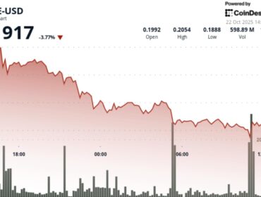 Markets Share this article By Shaurya Malwa, CD Analytics Updated Oct 22, 2025, 2:44 p.m. Published Oct 22, 2025, 2:44 p.m. Dogecoin fell 2% to $0.1910...
