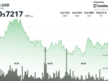 CoinDesk PEPE Holds Key Support Level as Volume Surge Points to Whale Trading Activity Trading volume surged 72% above its daily average, reaching 2.70 trillion tokens, indicating large players are actively managing positions. by CD Analytics October 28, 2025 0 commentFacebookTwitterLinkedInPinterestshare