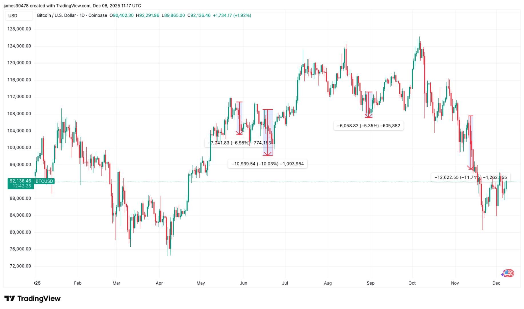 Since Sunday’s futures open, the price has already jumped above $92,000 on Monday, but the question remains whether this strength will hold or simply mark the start of another conference related correction.