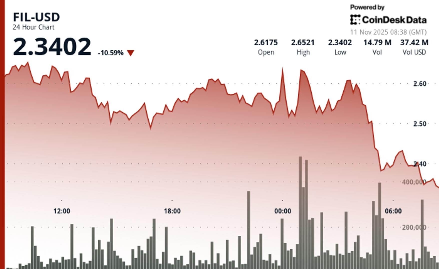 - FIL slid to $2.34 from $2.61 over 24 hours, establishing a clear downtrend