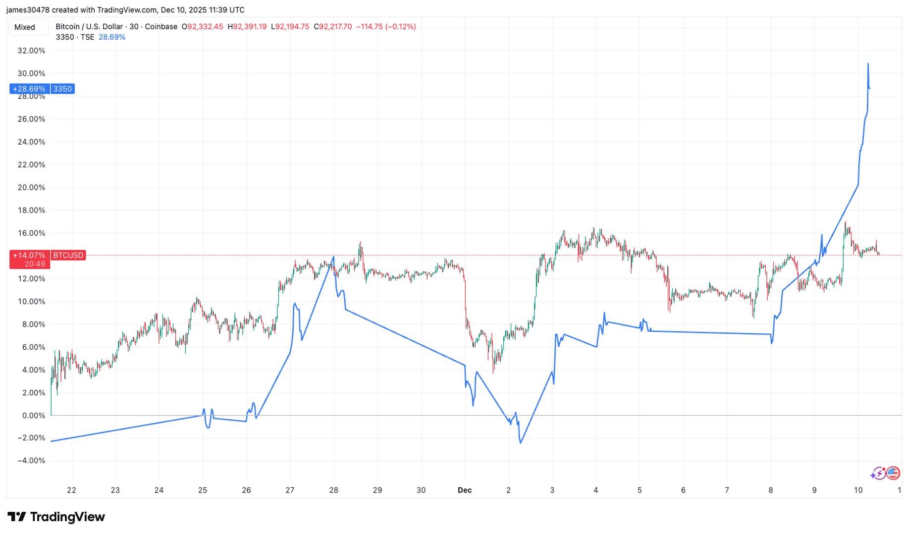 Since bitcoin bottomed near $80,000 on Nov. 21, the asset has risen roughly 15%, while Metaplanet’s share price has gained almost 30% over the same period.