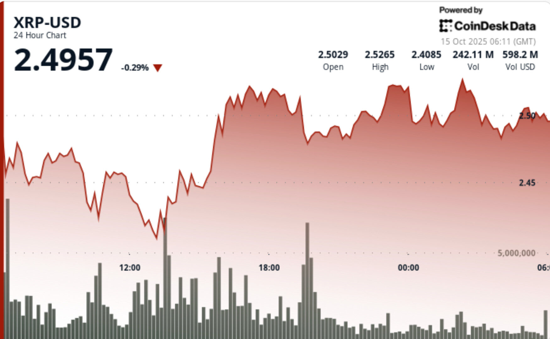 - Late-session trade saw XRP recover modestly to $2.50 as dip-buying stabilized order books.